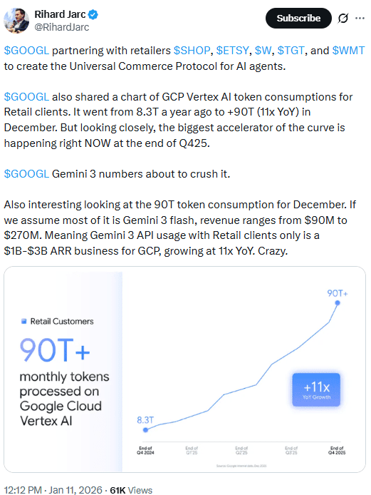 The Agentic Commerce Play (SHOP): Over the weekend, a major agentic protocol was announced with Shopify. This is the eCommerce pillar. Imagine a world where your AI agent doesn’t just search for a product but negotiates, verifies inventory, and executes the purchase through the world’s largest commerce backbone. Google is the interface; Shopify is the warehouse. This effectively bypasses the traditional discovery phase that Amazon once owned.